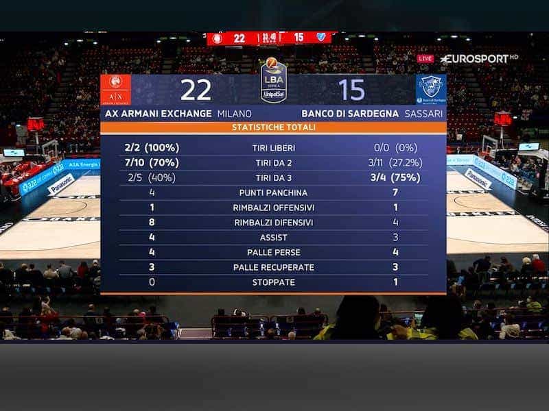 Nelle pause del gioco sono mandate in onda grafiche di approfondimento come confronti testa a testa tra squadre e/o tra giocatori, focus a rotazione su un giocatore in particolare, ranking su determinate categorie di statistiche, classifiche, risultati, prossimi turni: tutto ciò che va a comporre l’asset dati che, una volta gestito, viene valorizzato anche in grafica.