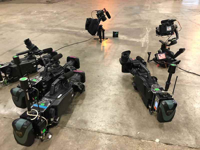 Tra le altre telecamere, una era piazzata a centro campo, sullo stile della “piattina” tipica del calcio, ma in posizione rialzata su un supporto Hi-Lo alto due metri.