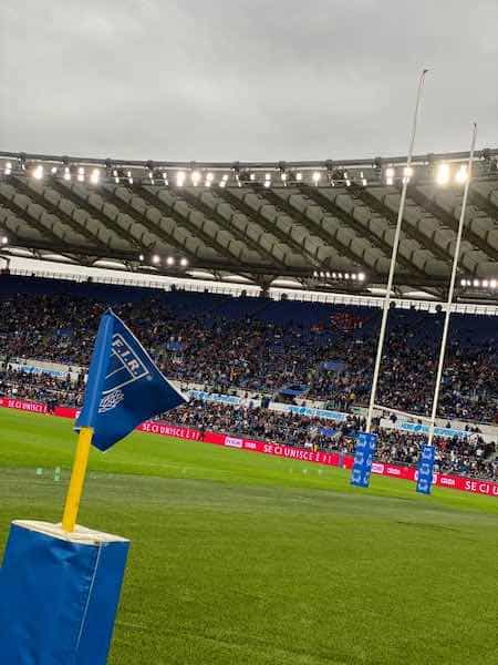 Ai 4 angoli delle aree del campo erano collocate le telecamere definite TMO (la VAR del rugby) utili all’arbitro, ospitato a bordo dell’ob-van, per verificare eventuali falli, la validità di punti segnati e le varie azioni”.