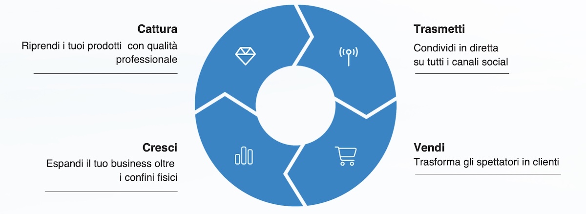 Progettato per rispondere alle esigenze di comunicazione di aziende, professionisti e organizzazioni pubbliche, il sistema trasforma qualunque spazio – showroom, punto vendita, sala riunioni o area espositiva – in uno studio di produzione video completamente operativo.