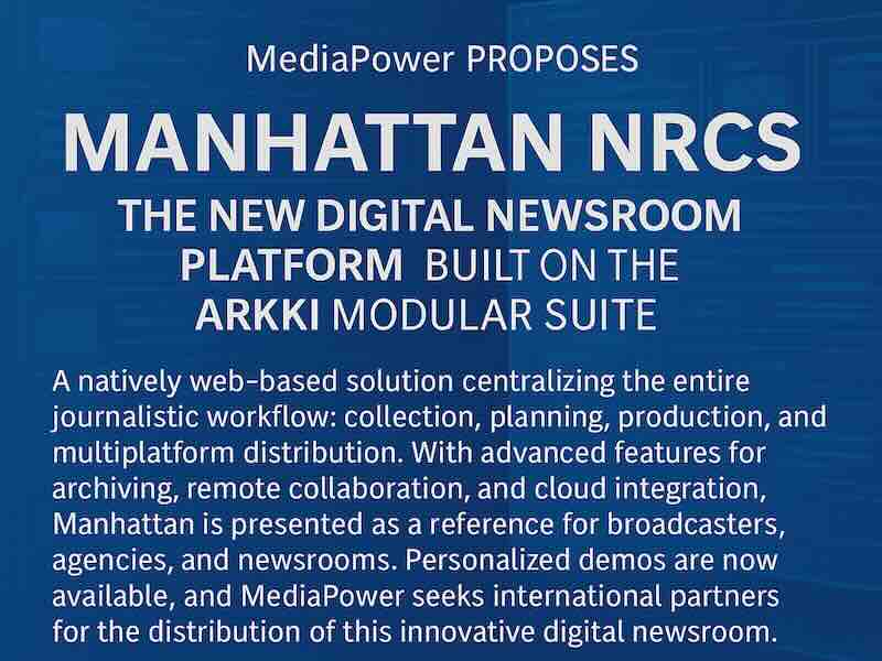 MediaPower announces the availability of Manhattan NRCS, a new digital solution designed to optimise the entire news production cycle. Based on the proprietary modular ARKKI platform, Manhattan is developed to support every phase of the newsroom workflow: from news gathering and planning to production and multi-platform distribution.