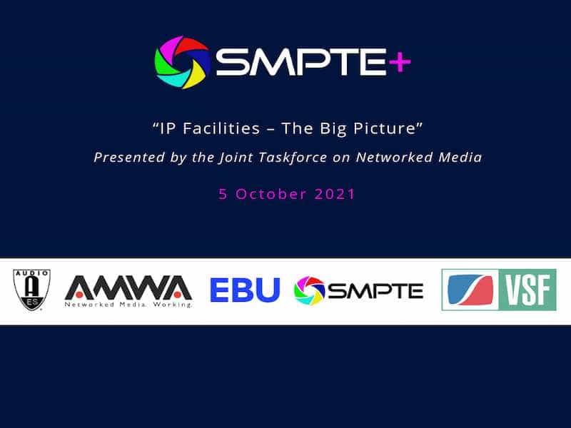 "IP Facilities — The Big Picture", presentato dalla Joint Taskforce on Networked Media e fornito tramite SMPTE+, è previsto per il 5 ottobre