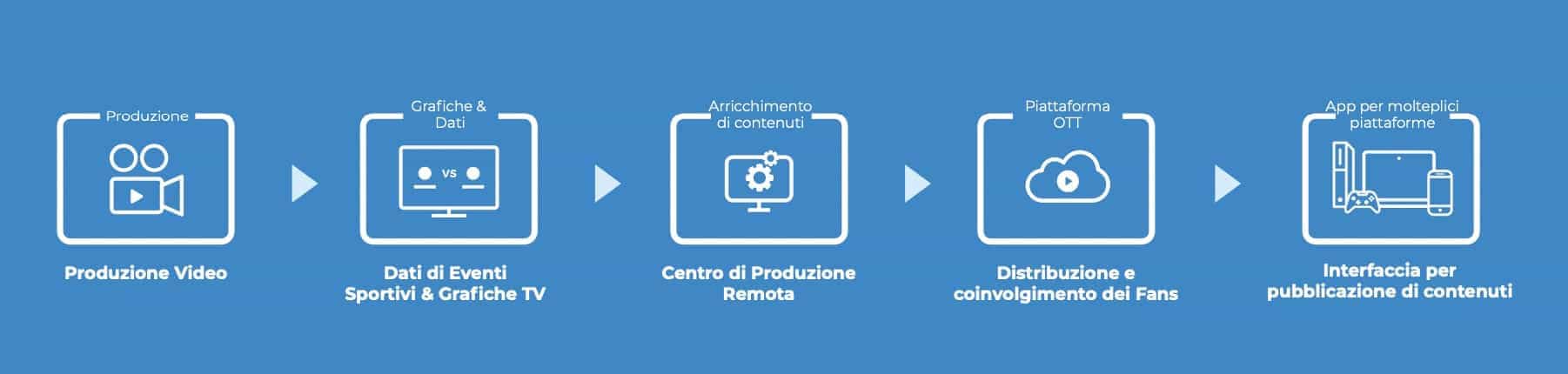 L'implementazione di soluzioni innovative integrate, con raccolta dati provenienti da sensori nel corso della diretta di eventi sportivi e partite, permette di trasferire dati e informazioni all’audience