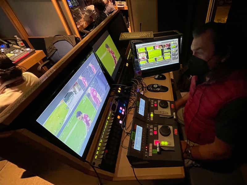A bordo la regia è in grado di ospitare 3 server di produzione ChannelMAX dedicati al replay di EVS che permettono di registrare fino a 12 canali, anche se qui sono ne sono ingaggiati otto con 4 operatori.