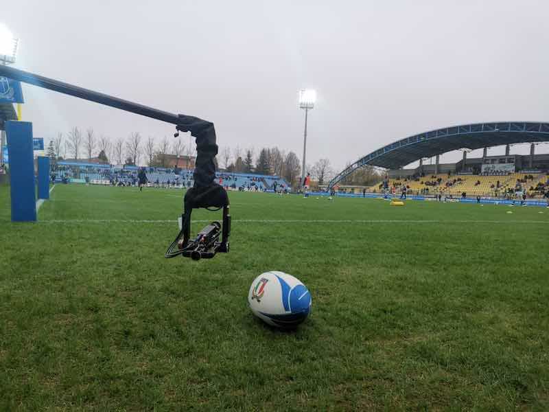 Ai 4 angoli delle aree del campo erano collocate le telecamere definite TMO (la VAR del rugby) utili all’arbitro, ospitato a bordo dell’ob-van, per verificare eventuali falli, la validità di punti segnati e le varie azioni”.
