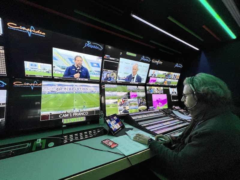 Cinevideo also guarantees audio coverage in stereo and also the interface with an external company - appointed by the International Federation - which guarantees the entire complex communication system of the referees (with each other, linesmen, with the direction, main referee).