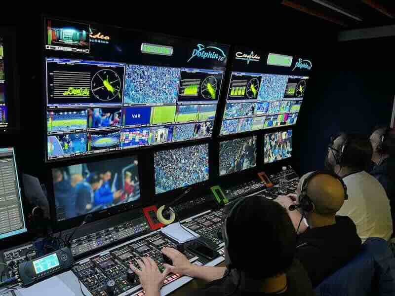 Il tipico truck di produzione di Cinevideo è già perfettamente completo di tutta la catena tecnologica produttiva nativa in UHD HDR, a partire proprio da telecamere e mixer, in HLGI-log e anche la grafica viene fornita in HDR, da Deltatre.